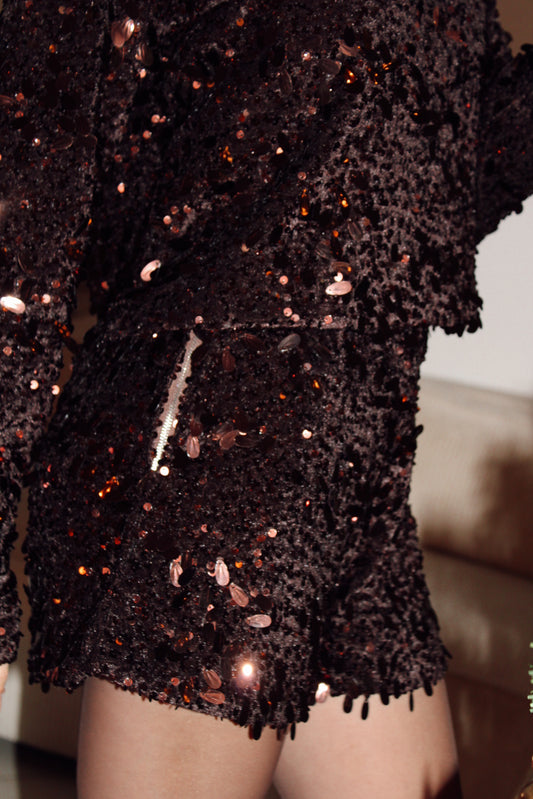 Short à sequins LIA - Chocolat